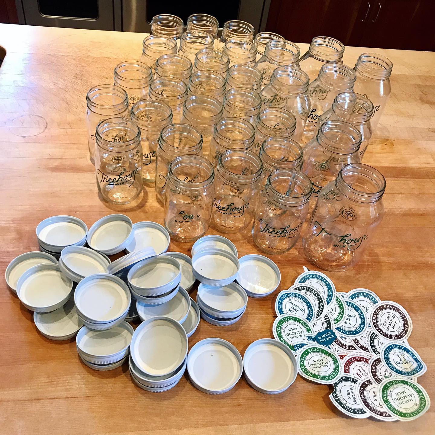 Next thing we knew, we were getting up at 6am every day to whip up nutmilks (like, nine different kinds) and oat milk (before that became a thing) by hand with Vitamixes, bottling it in glass jars, hand-delivering to homes and coffeeshops around Atlanta, and selling it at local farmers markets on weekends. We'd take the used jars back from our customers, wash them, and repeat the process, over and over.